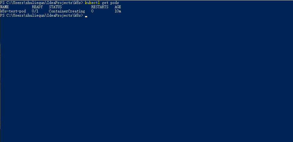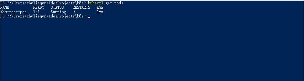 使用命令kubectl get pods 查看k8s-test-pod是否創(chuàng)建成功,以及k8s-container容器是否啟動(dòng)成功,如圖所示: