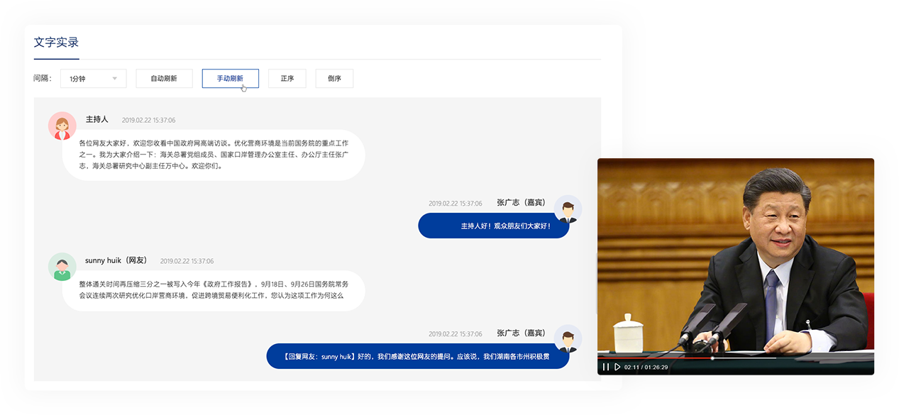 在線訪談是全面推進(jìn)政務(wù)公開(kāi)、積極回應(yīng)社會(huì)關(guān)切問(wèn)題、聯(lián)系服務(wù)群眾、展示政府良好形象的重要平臺(tái)。是政府網(wǎng)站必備的功能配置之一