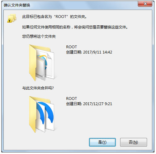 此時(shí)會出現(xiàn)彈框提示,選擇是。后續(xù)所有確認(rèn)框均選擇是,所有重名文件選擇復(fù)制并替換。
