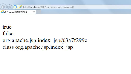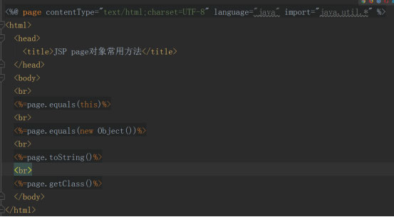 page對(duì)象中常用的方法為boolean equals(Object obj)、String toString()、Class getClass()。下圖是page對(duì)象常用方法使用示例: