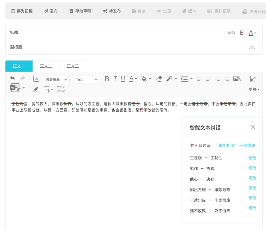 【新增】富文本編輯器上線“文本糾錯(cuò)”功能服務(wù)