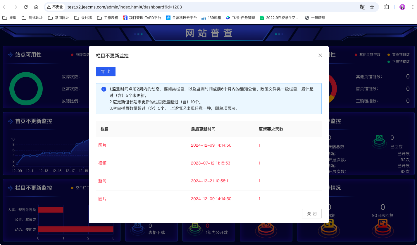 信息安全非常重要!信息安全非常重要!信息安全非常重要!重要的事情說三遍。一站式檢測文本中是否夾雜色情、推廣、辱罵、違禁、涉政、灌水等垃圾內(nèi)容,凈化網(wǎng)絡(luò)環(huán)境,為您的內(nèi)容發(fā)布提供更可靠的內(nèi)容安全保障。內(nèi)容是否有錯別字,站點(diǎn)是否正常,欄目是否更新,鏈接是否可用,留言是否已回復(fù),信件是否已辦理。大屏實時掌握系統(tǒng)使用情況。JEECMS最新版本x2.10帶來的全新體驗--網(wǎng)站普查、系統(tǒng)監(jiān)測、智能糾錯、錯別字管理重磅來襲。讓我們一起看看新版本的功能介紹吧。