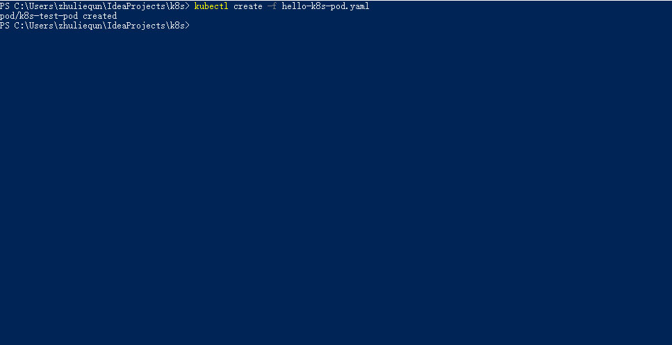 使用命令 kubectl create -f hello-k8s-pod.yaml 創(chuàng)建Pod,如圖所示: