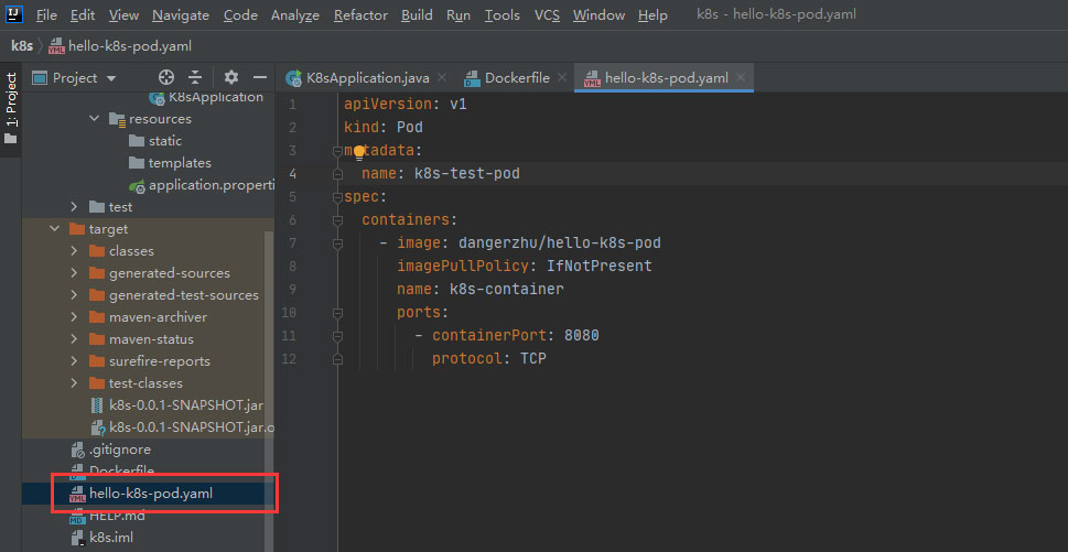 我們先創(chuàng)建hello-k8s-pod.yaml文件,如圖所示: