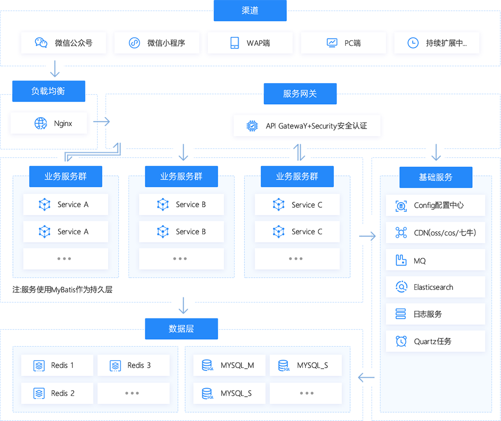 底層重構(gòu),摒棄傳統(tǒng)的單體、垂直應用,服務(wù)端采用時下最新的Spring Boot2 、Spring Cloud結(jié)合前端Vue,接口全覆蓋,構(gòu)建易開發(fā)、易維護、易部署的穩(wěn)定、安全、高效商城系統(tǒng)