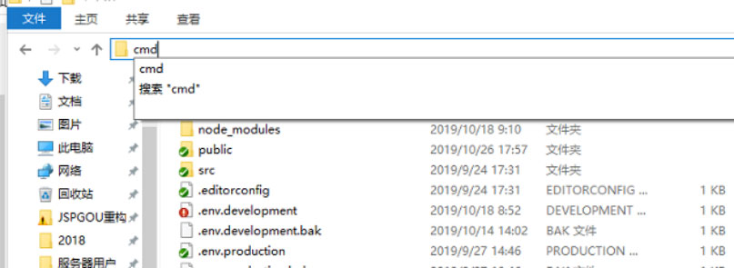 2、在地址欄輸入cmd, 回車在此路徑下打開cmd命令行窗口