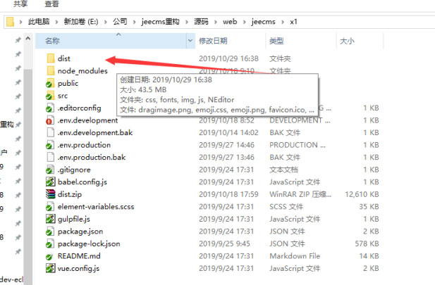 5、打包完成后該目錄下會多出一個dist文件夾