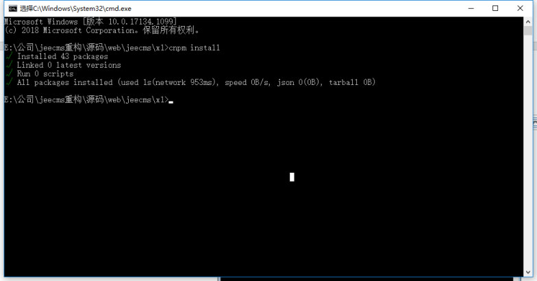 3、輸入cnpm install后回車, 安裝前端依賴