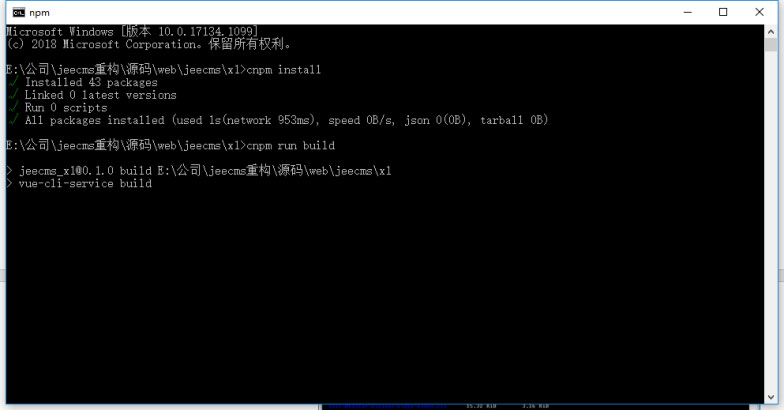 4、輸入cnpm run build后回車, 進行打包