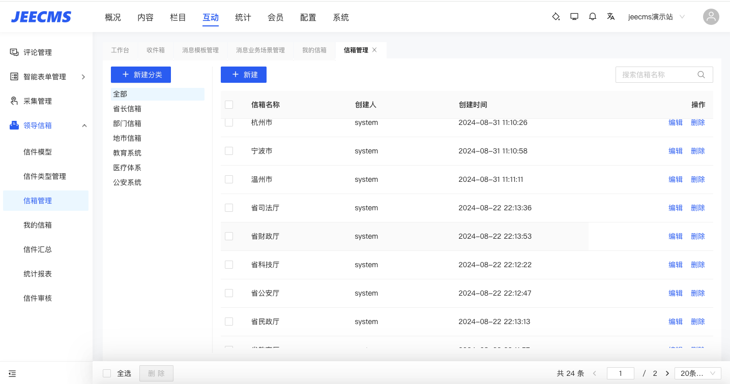 新增領(lǐng)導(dǎo)信箱和消息管理-- JEECMSx2.8發(fā)布